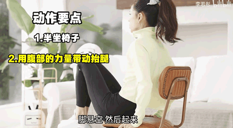 小美帶來的第一個動作就針對了"想要瘦肚子"的朋友:找一把椅子,臀部靠在坐墊上,上半身一直線,腹部帶動膝蓋向胸口方向收縮。